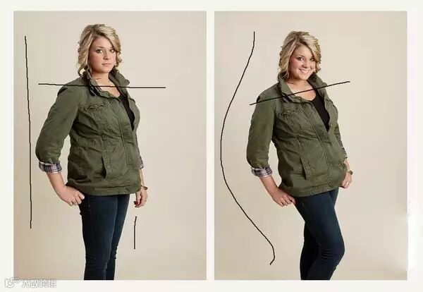 凹凸各种瘦长“菱形”空间。叉腰不要随意叉两侧,而是双手有意靠拢,视觉上缩腰围。