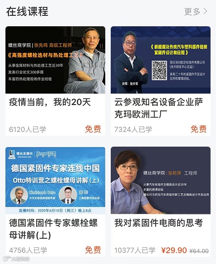 2、在线课程:紧固件行业技术大咖,专家及机构在线分享