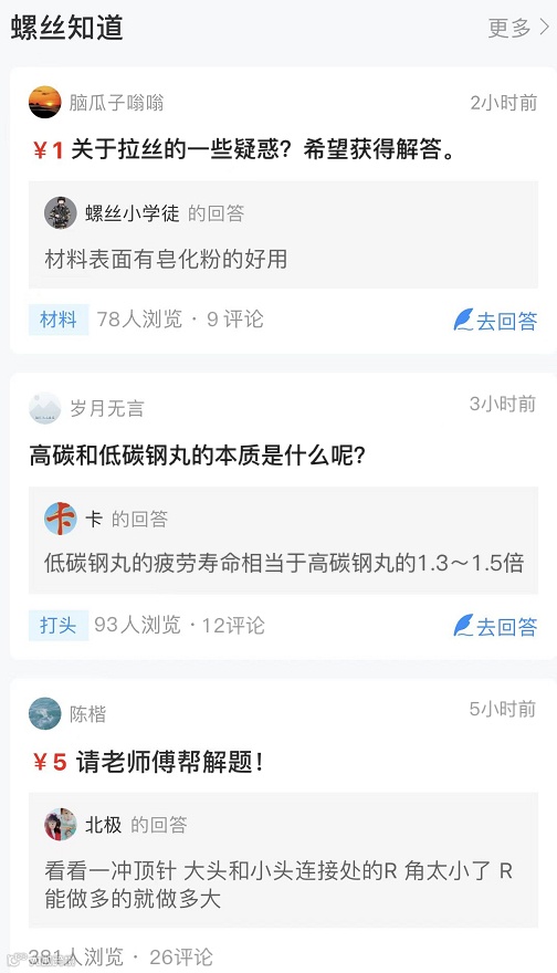 在这里,你想问的紧固件,紧固件实操的、理论的、技术的、机械的……48小时内就有人给你解决。