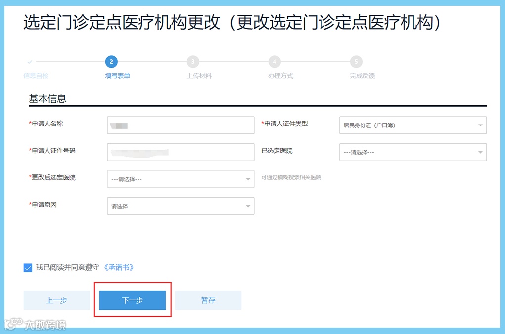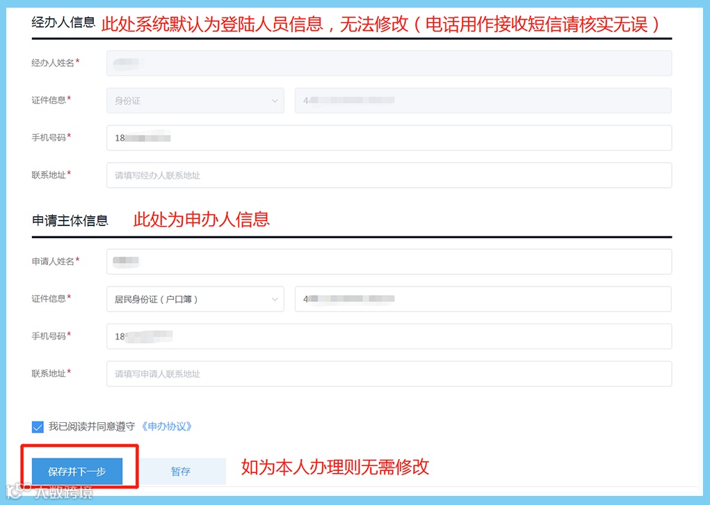 7、资料填写完成后按“保存并下一步”;