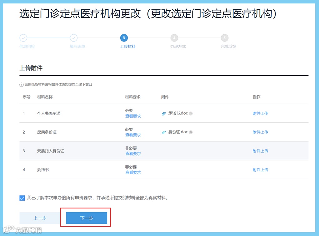 9、按要求上传资料图片后按“下一步”;