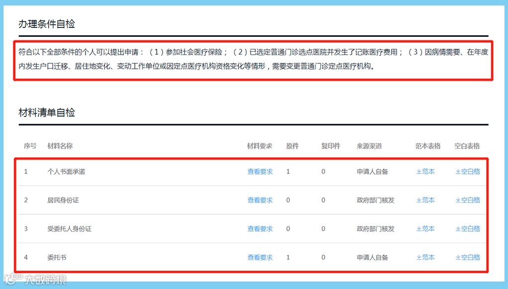 6、材料:查看是否符合办理条件→准备好所需资料;