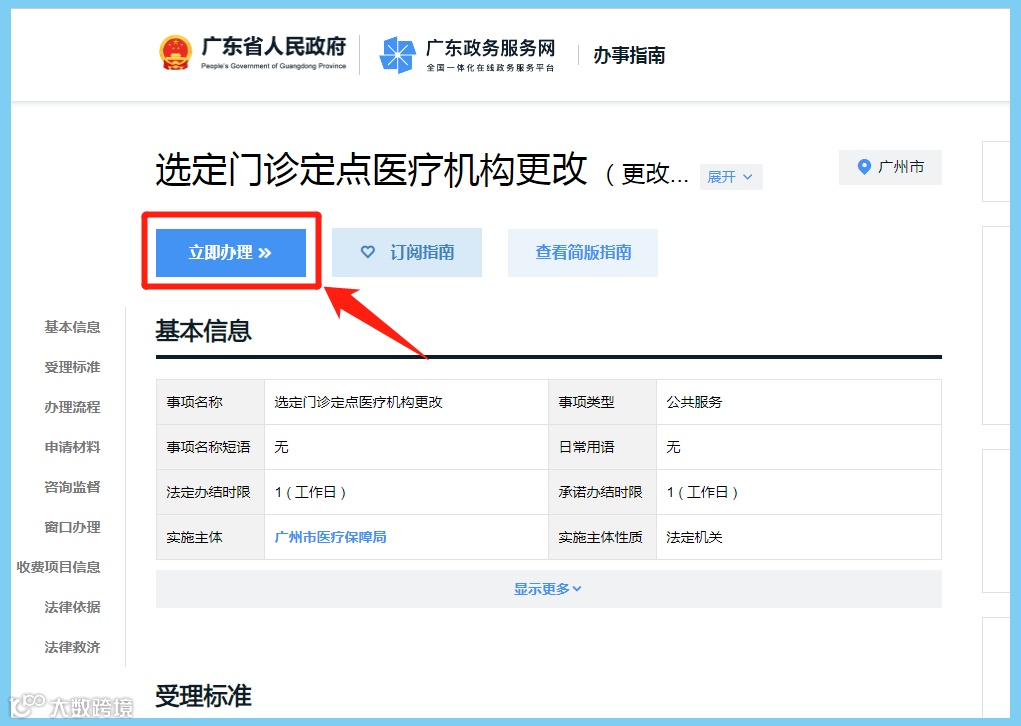 5、点击“立即办理”;