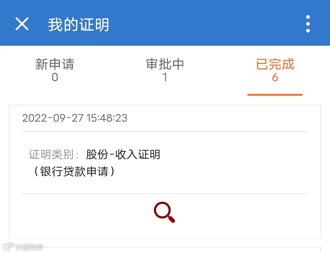 5、可以在【已完成】界面查看到已审批通过的证明: