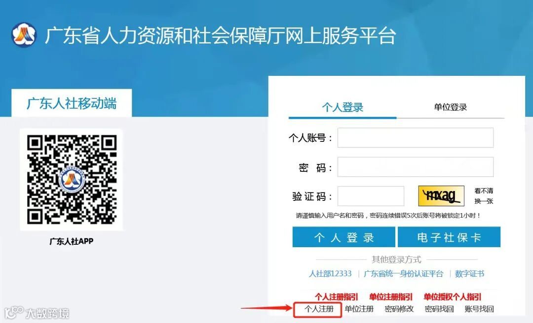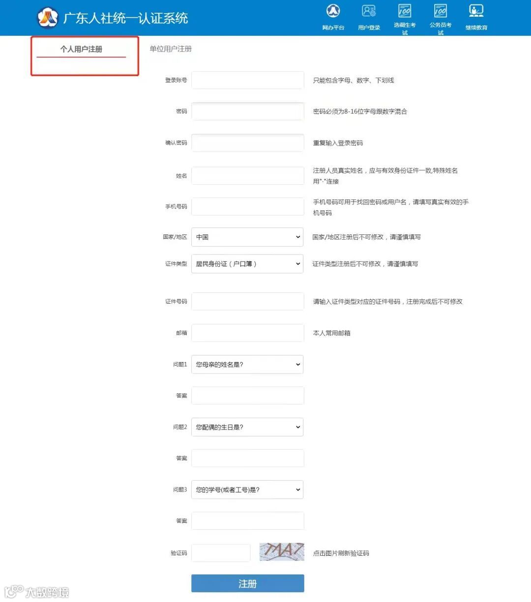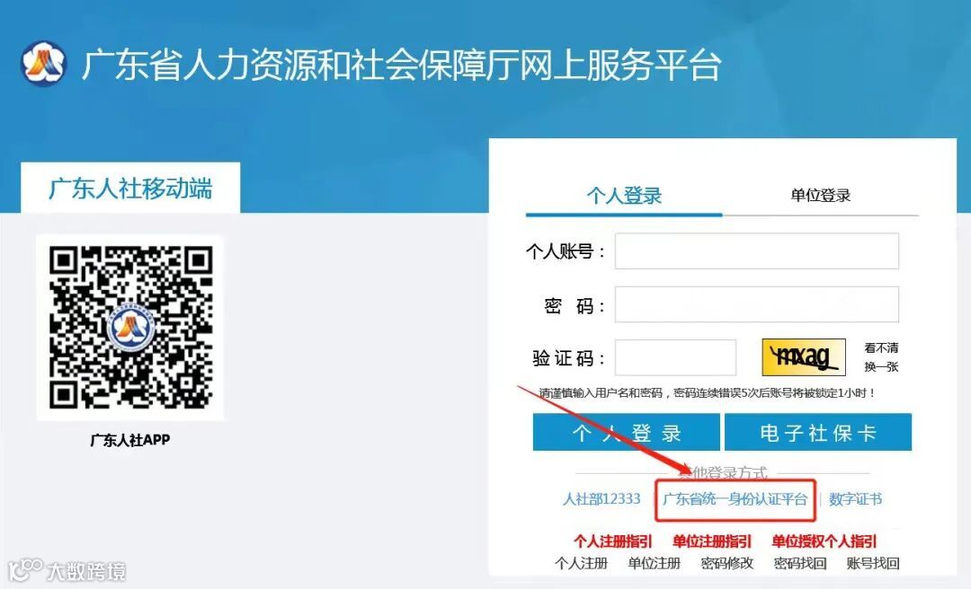 方法一:使用广东人社统一认证平台注册登录个人用户: