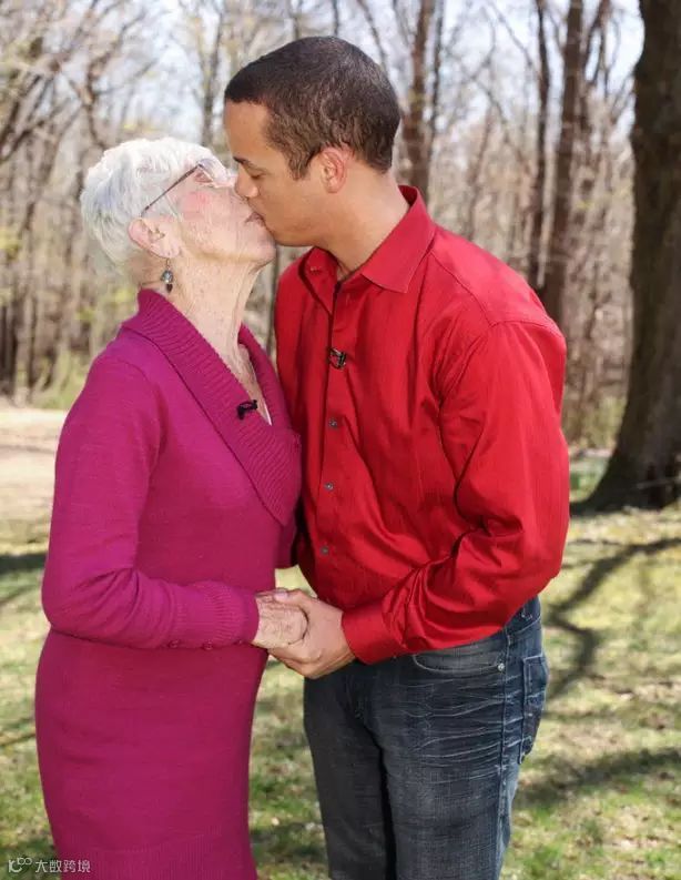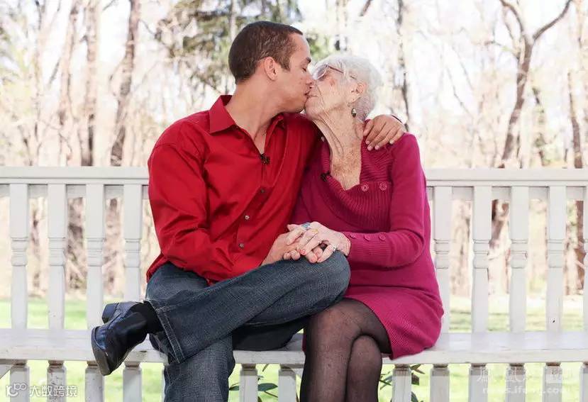 Kyle Jones与91岁女友Marjorie McCool拥吻
