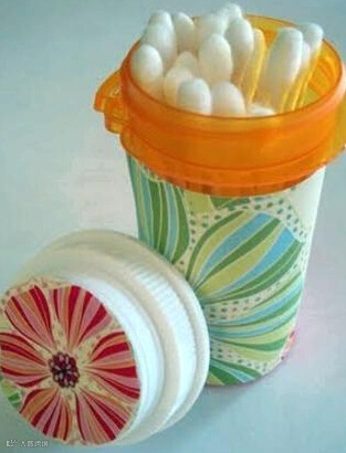 16 把旧的药瓶装饰一下,可以用来装棉签