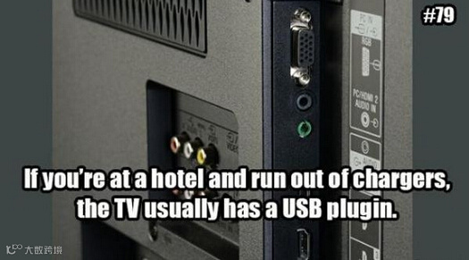 3 如果你忘记带充电器了,别紧张。一般电视上总有一个USB插孔