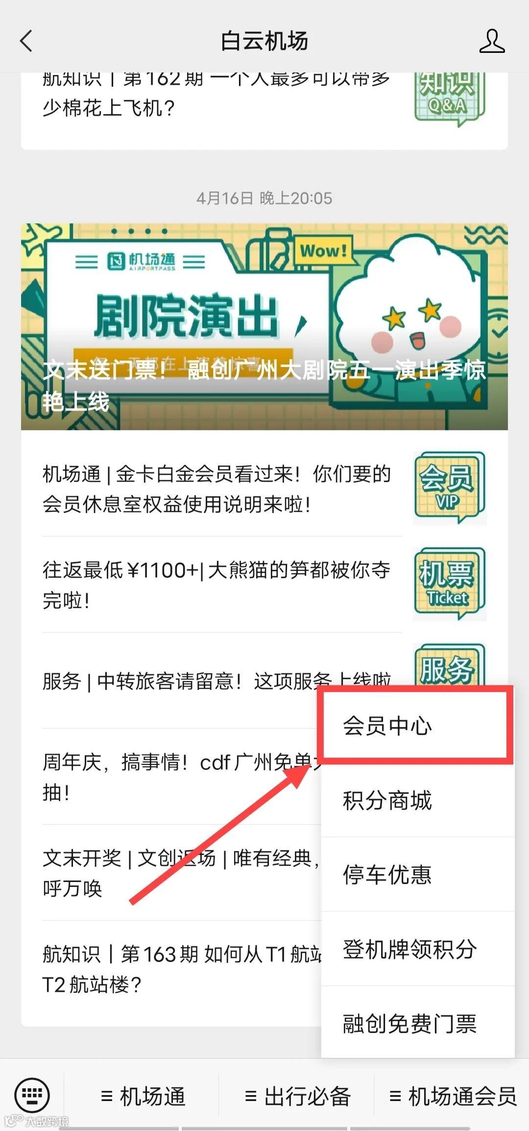 进入【白云机场】公众号