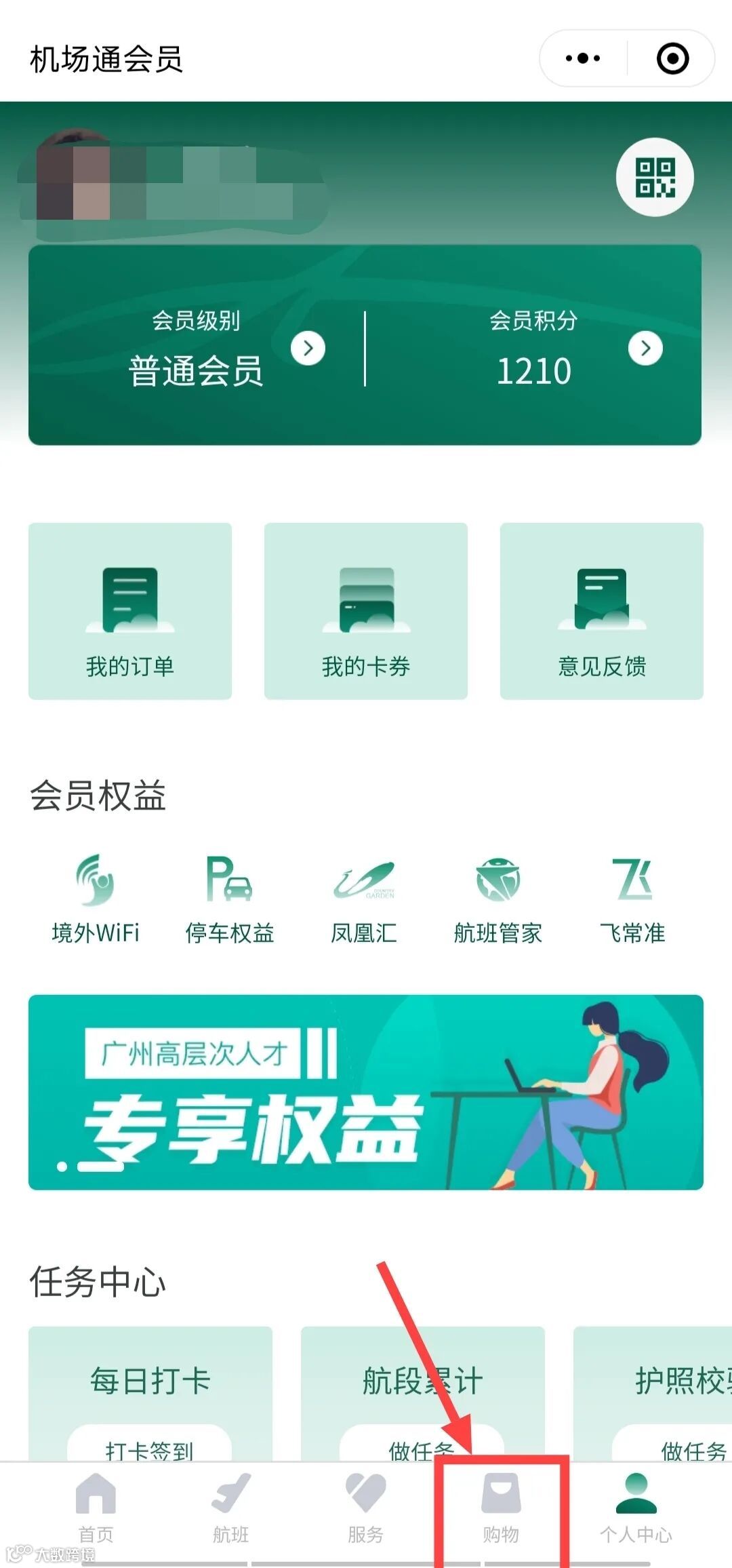 点击菜单栏底部【机场通会员】