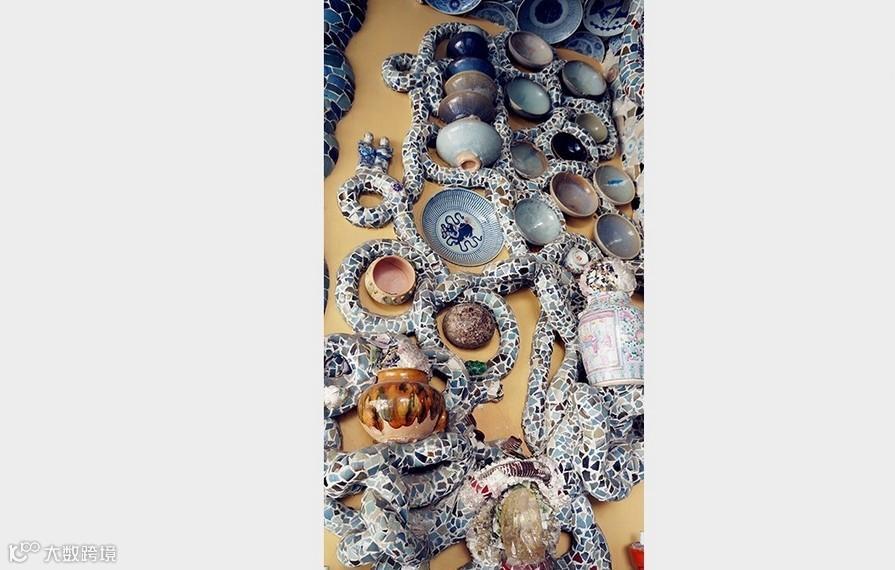 房子装饰用的瓷片没有一片现代瓷,其中还不乏钧窑、汝窑等五大名窑的瓷片。瓷器涵盖了各个历史时期,有晋代青瓷、唐三彩,宋代钧瓷、龙泉瓷,元明青花、清代纷彩等各个时代的精品。