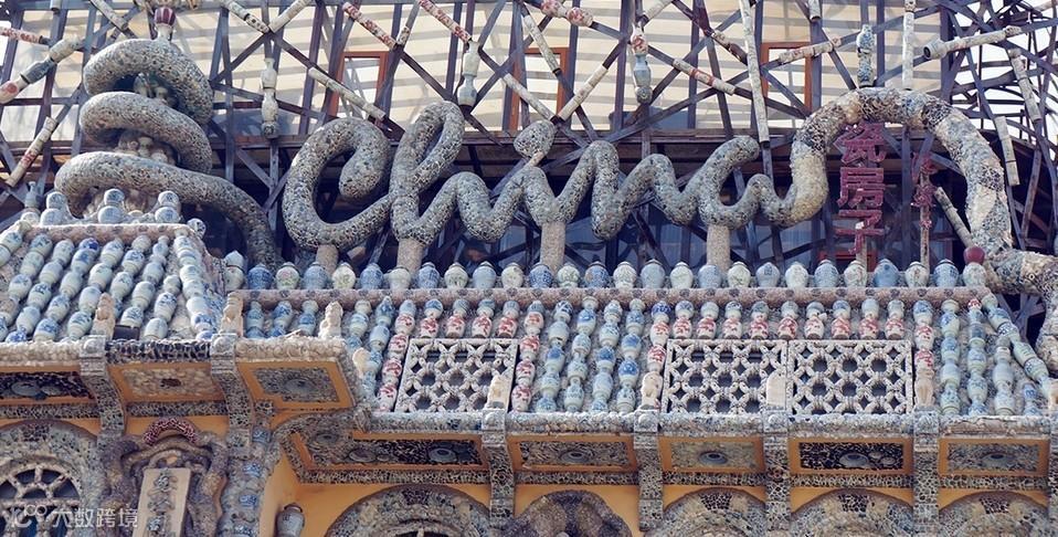 瓷房子围墙,全部由瓷器嵌进墙壁形成。