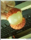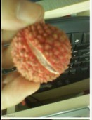 ——荔枝的中间有一条缝,只要沿着那个方向轻轻一咬,如果没洗嫌脏的话用手轻轻一捏也行,壳就会自动裂开了啊。特别做了一个图示。
