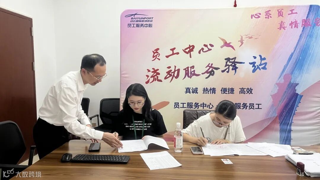 八月的白云机场正值暑运高峰期,一线岗位员工在繁忙的客流中坚守岗位,全力守护每个航班的平安出行。8月11日-12日,员工服务中心流动驿站先后走进航服分公司、安检护卫部,为128名奋战在暑运一线的员工现场办理劳动合同签订、政策咨询等业务,以实际行动诠释“以人为本”的服务理念,切实打通服务员工的“最后一公里”。