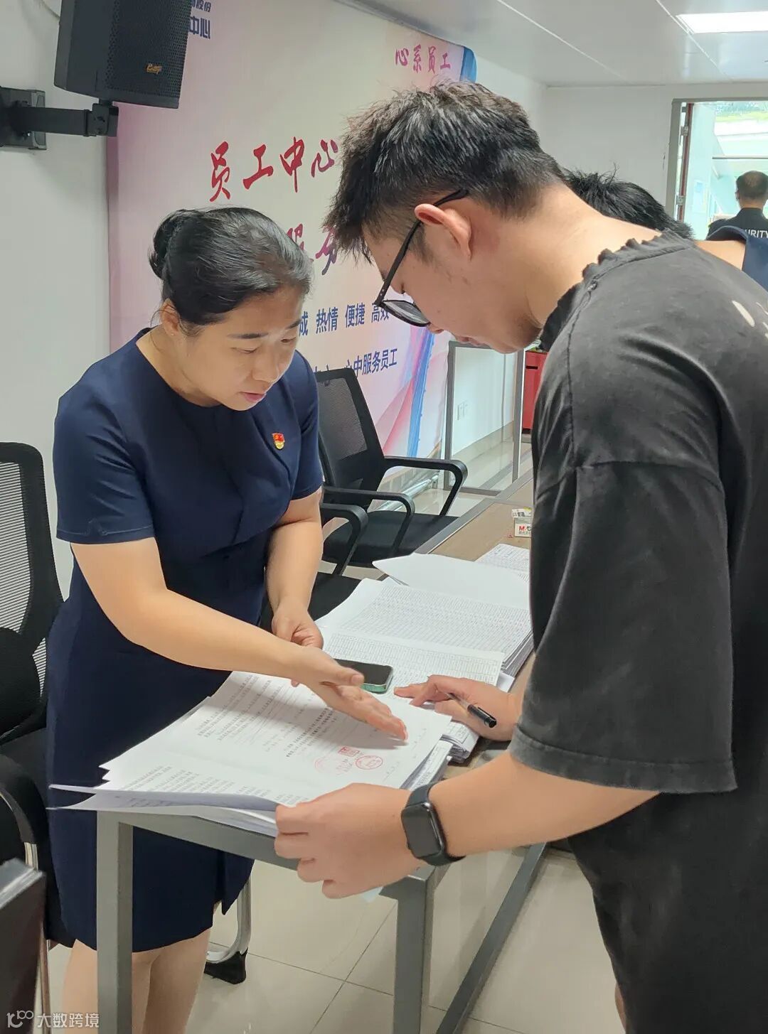 活动现场,工作人员以高效且严谨的态度投入工作,从仔细核查员工的入职年限、岗位信息等资料,到指导员工填写合同中的关键条款,每一个步骤都有条不紊。整个流程便捷高效,避免了员工往返多个部门来回奔波的麻烦。
