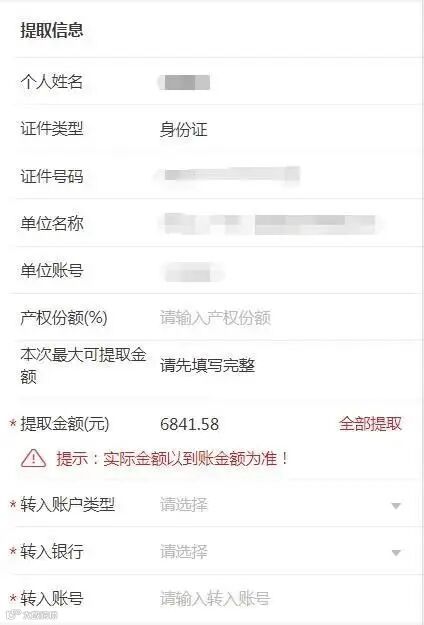 提取频次:每个公积金账户只可提取一次。