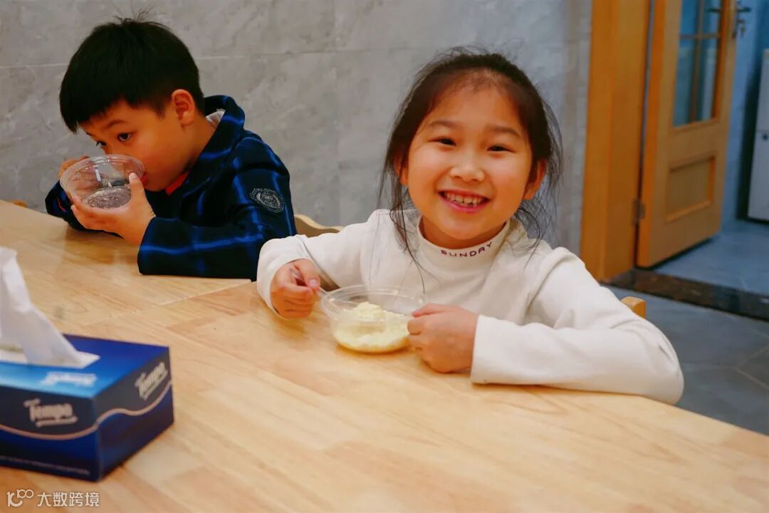 下午茶点为豆腐花,许多孩子询问是否能吃第二碗~