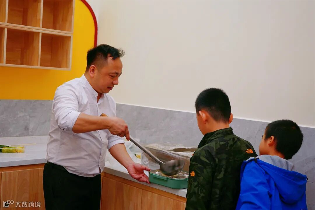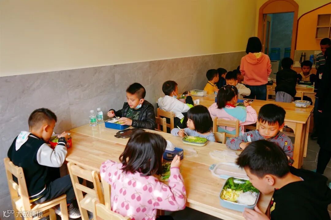 中午吃饭时间,分批用餐,老师引导孩子饭前洗手,注意卫生。餐食由老师从饭堂统一打回,确保每个孩子有热饭吃,吃得饱,吃得好。