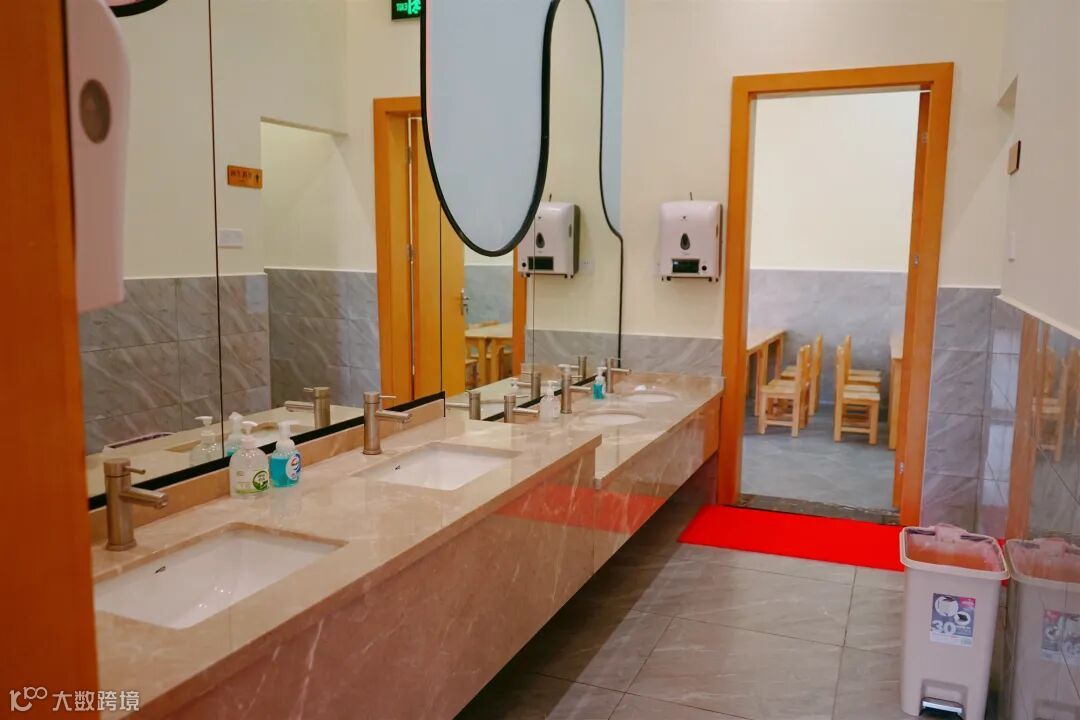 吃饭时间段清洁阿姨会全程跟进,时刻保持洗手间地板干爽,防止孩子滑倒。