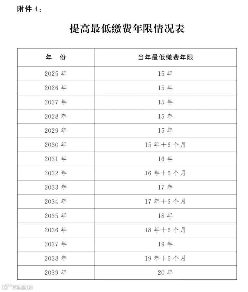 此外,最低缴费年限也将在未来延长,具体可参考下表: