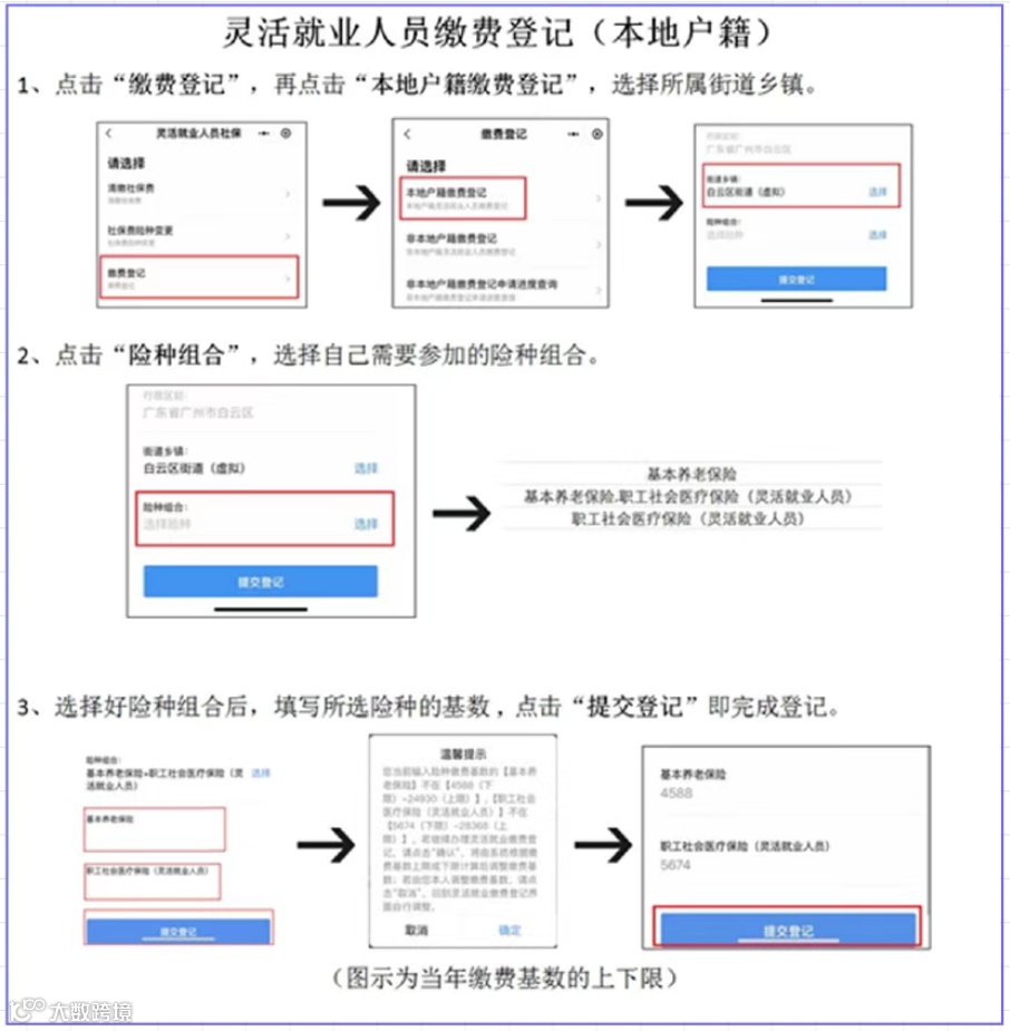 非本地户籍:选择【非本地户籍缴费登记】,提交后需等待审核。