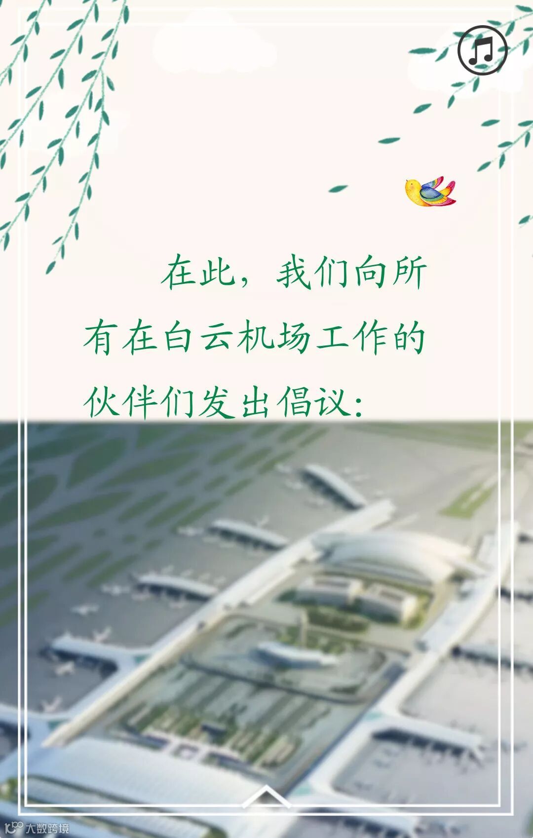 我们来自五湖四海,因白云机场而相聚;我们都有一个家,名字叫"白云机场"。面对成千上万进出港的旅客,我们希望在和谐愉悦中传递快乐,传递幸福,传递爱!在此,我们向所有在白云机场工作的小伙伴们发出以下倡议!