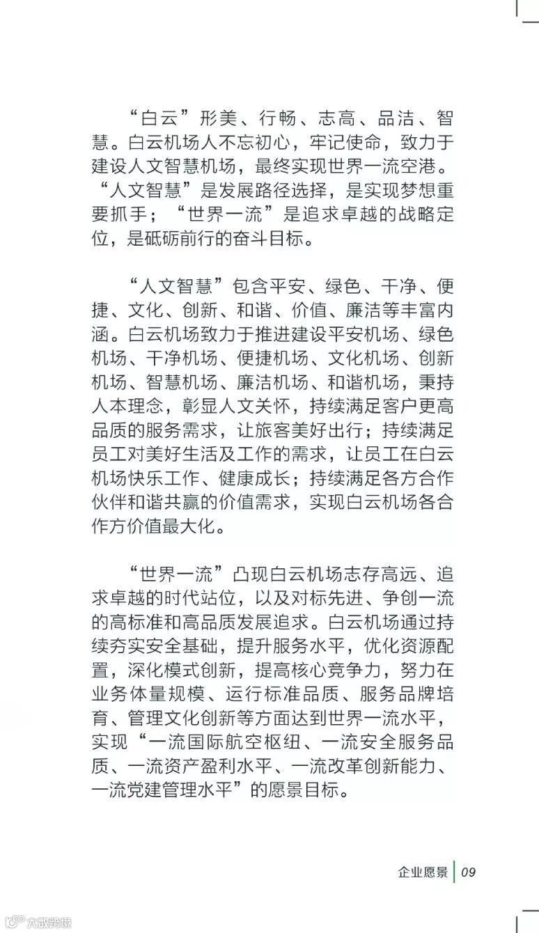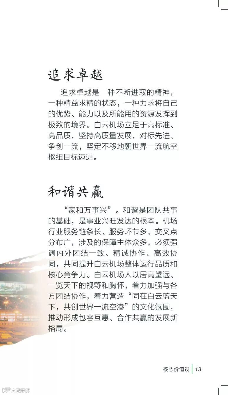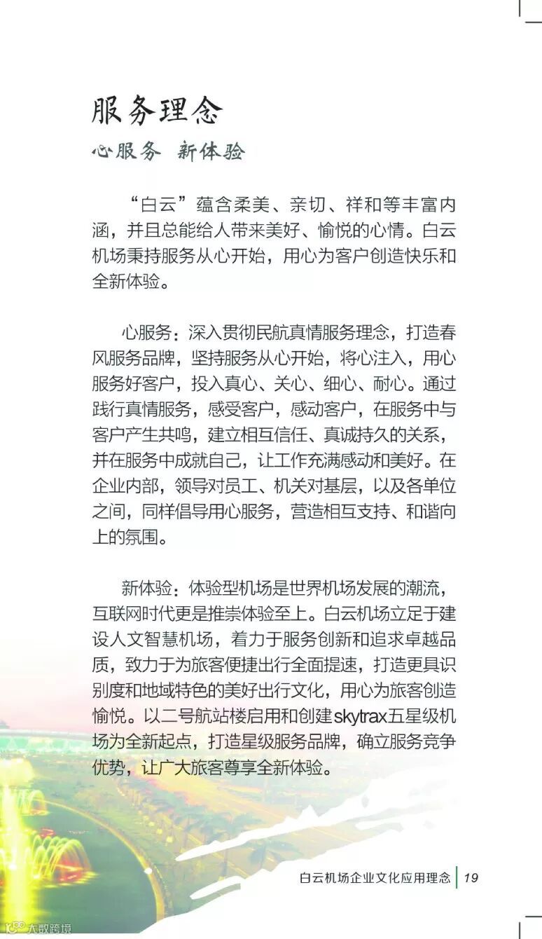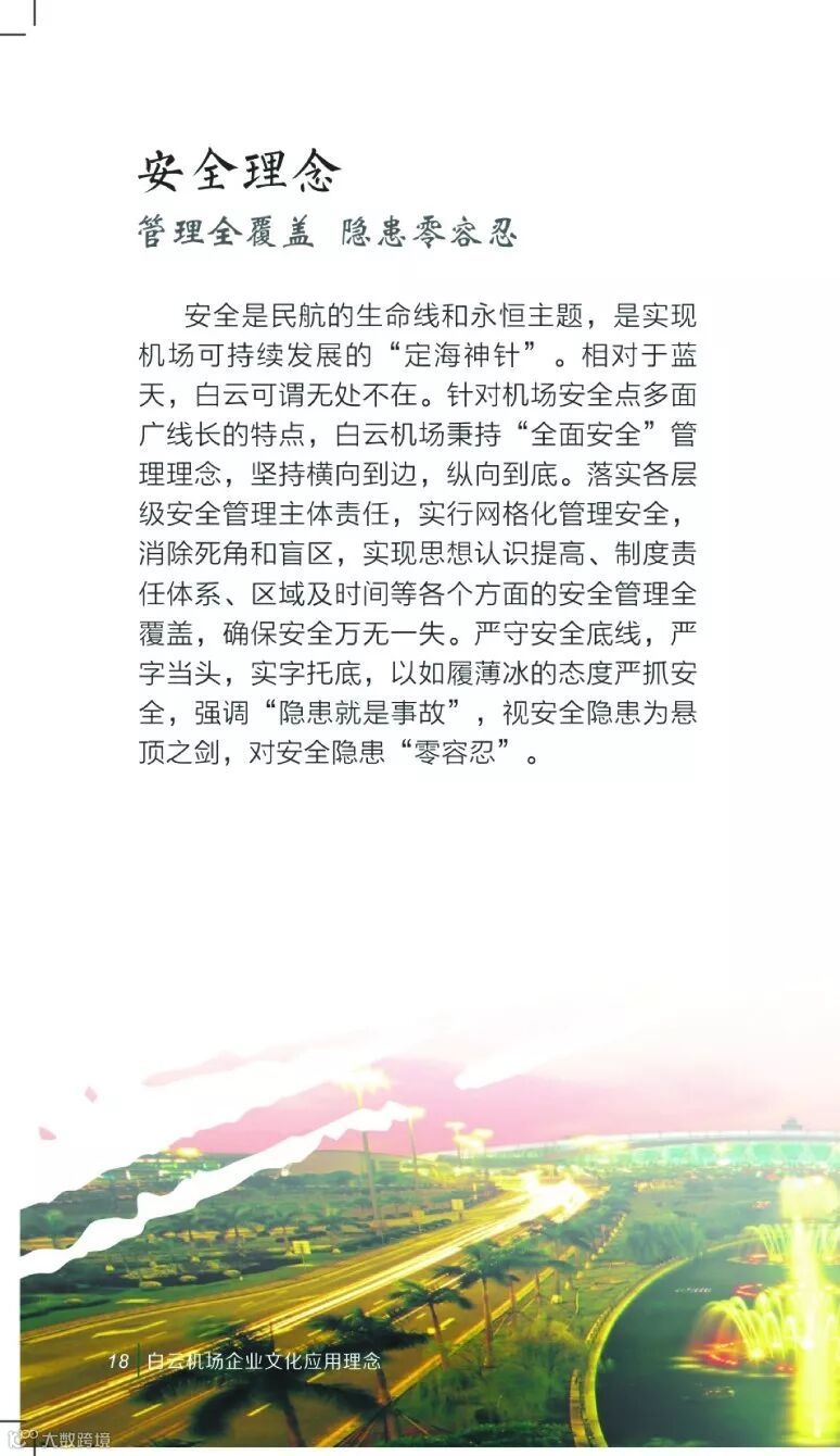 白云机场企业文化理念体系于2018年4月11日正式下发实施,该体系凝结了白云机场人智慧的结晶,为了让每一位员工对公司企业文化深刻认知并高度认同,公司精心编制了《白云机场企业文化手册》,便于大家学习领会。