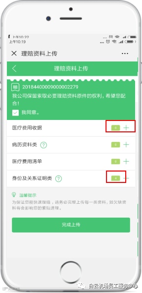 1、上传后可通过理赔服务号下绿色圆圈查看案件查理进度;