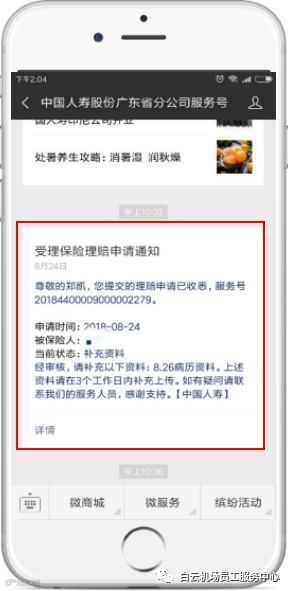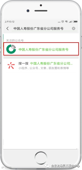 1、关注【中国人寿股份广东省分公司服务号】官方微信;