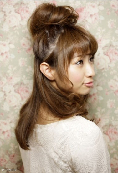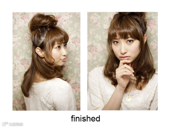 第七款:适合中长发MM超简单的花苞头
