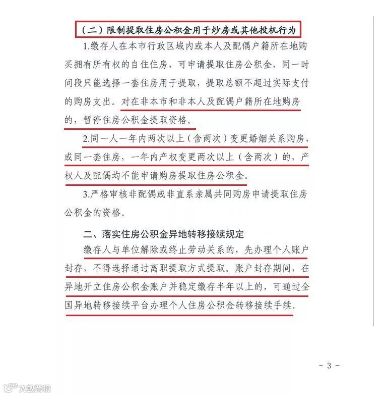 答:粤建金〔2018〕115号明确规定:“不允许提取住房公积金用于炒房投机”、“对于异地购房尤其是非户籍地非缴存地购房的情况,各地可结合自身实际情况阶段性停止实施该类型提取政策”。