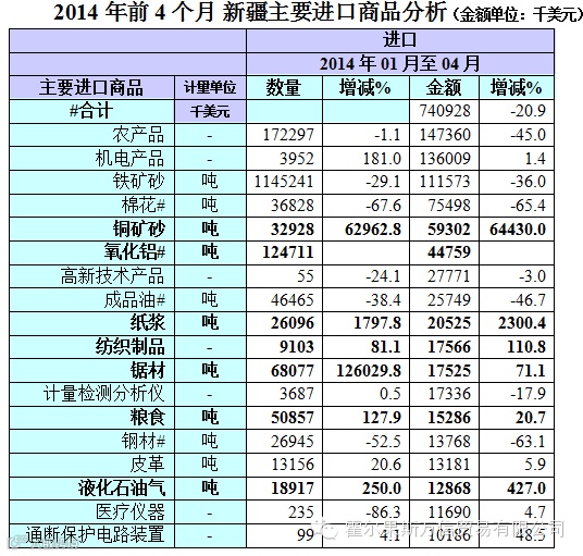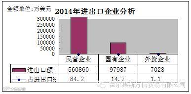 (五)民营、国有、外资企业进出口同步下降。前4个月,自治区民营企业进出口56.09亿美元,下降2.4%,占进出口总值的84.2%;国有企业进出口9.8亿美元,下降30.5%;外资企业进出口7028万美元,下降12.2%。