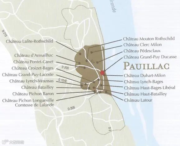 波亚克拥有绝佳的气候与地质条件,这是其出产杰出葡萄酒的基础。1855年分级中的五家一级列级名庄,有三家(拉菲、拉图、木桐)坐落在此。