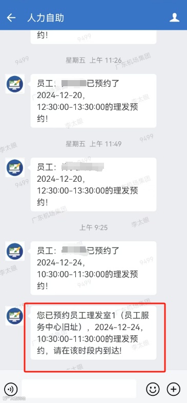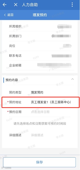 点击【人力自助】——【理发预约】