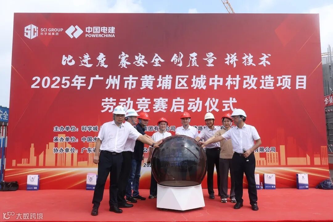 ▲随着活动嘉宾共同按下启动球,科学城城更集团城中村改造项目劳动竞赛正式启动