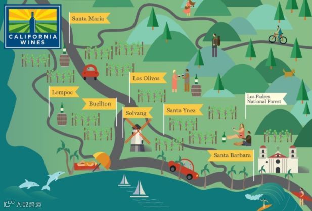 先一同前往《杯酒人生》的故事发生地,阳光明媚的美国加州,著名的葡萄酒产区圣巴巴拉(Santa Barbara),位于洛杉矶西北边车程大约三小时处。
