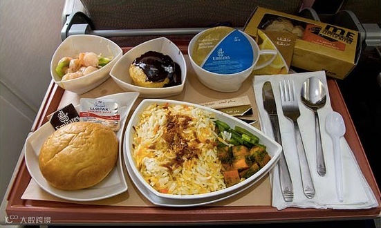 在阿航的头等舱进餐,简直可比肩在地面上的高档餐厅,不仅有情调也有内涵。所有餐食都骨瓷餐具盛装,餐具摆放在优质亚麻布垫上并用花卉装饰,这就是阿联酋版的“秀色可餐”。