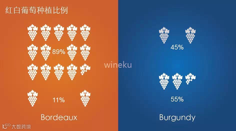 ▲勃艮第红葡萄种植比例约为45%,白葡萄种植比例约为55%