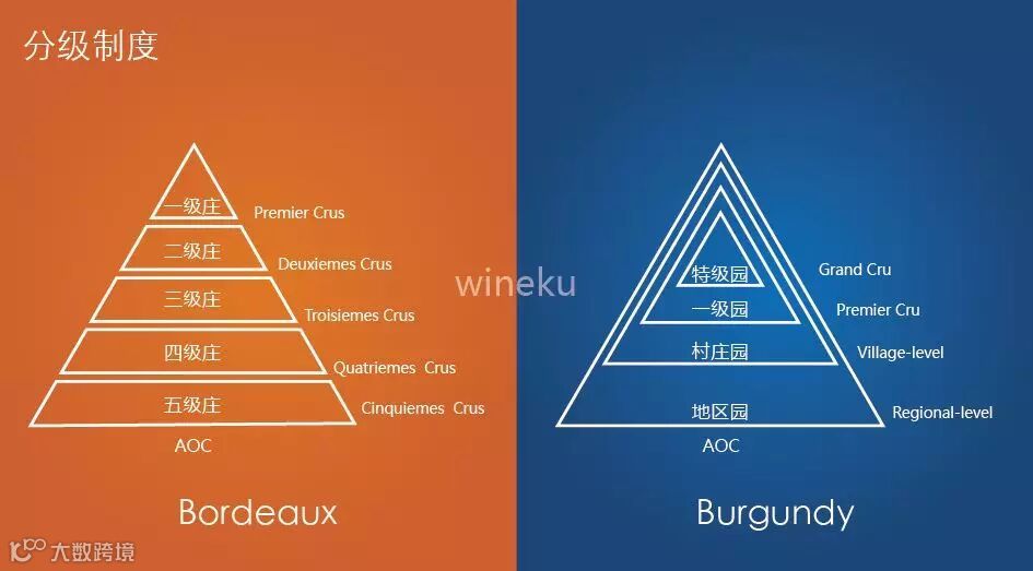 ▲勃艮第的分级制度则是对地块的分级,强调的是不同小地块之间独特的风土,以葡萄园为基础。