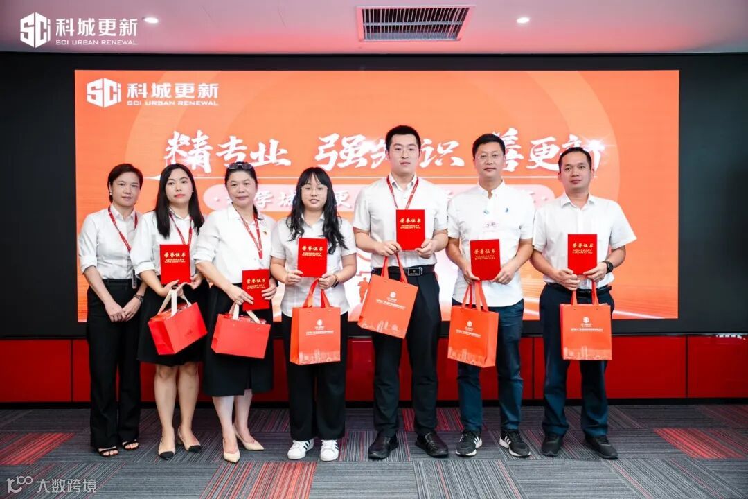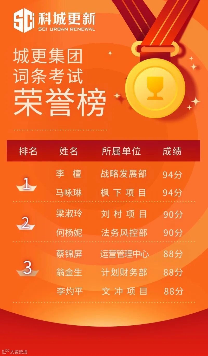 活动现场亦为在城更集团6月28日组织的词条考试中成绩并列前三的7名同事进行颁奖。