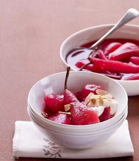 梨汤是我国传统的食疗补品,在干燥的冬季,喝梨汤能止咳祛痰,对嗓子有保护作用。在煮梨汤时,加适量的红葡萄酒,既补充了梨和葡萄酒中的营养物质,给人视觉上的享受,还能温暖肠胃,使其润肺止咳的功效发挥得更好。