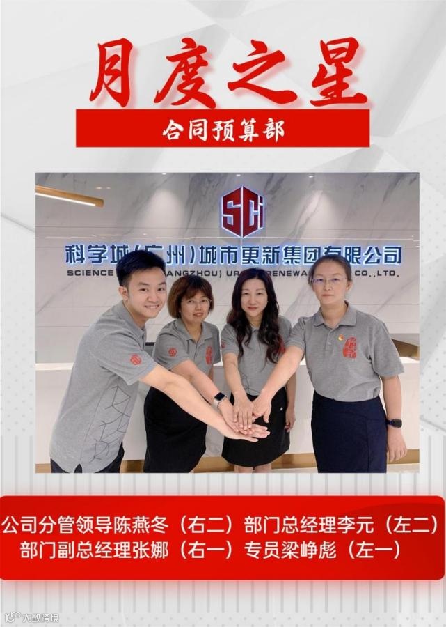 经推荐提名、事迹评定,公司党总支支委会研究决定,评选合同预算部为公司7月“月度之星”。
