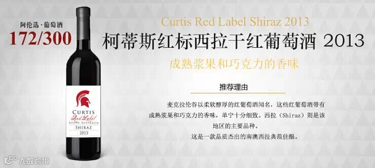 酒柯蒂斯红标西拉干红葡萄酒