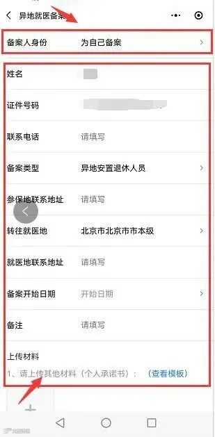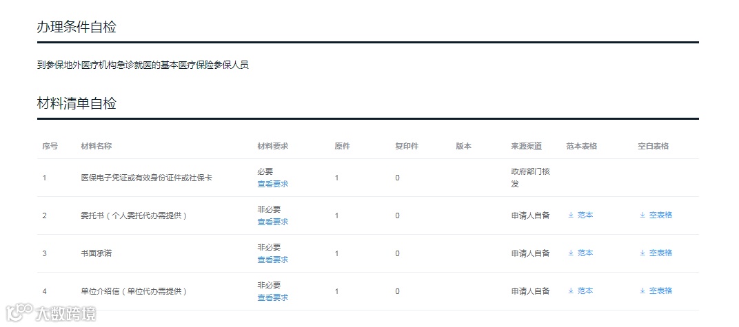 5. 选择具体需要办理的业务情形,下载相关材料范本或空表。(以“临时异地就医人员备案”为例)
