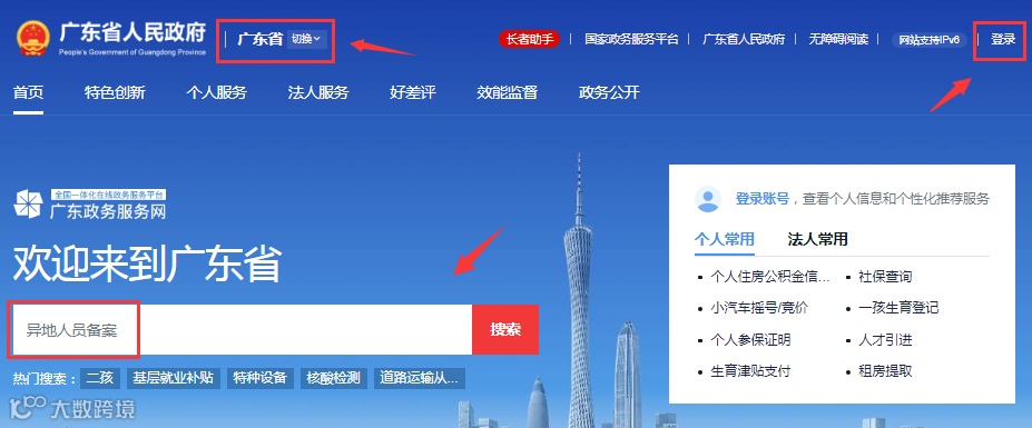 1. 登录广东政务服务网。(点击文末“阅读原文”即可跳转)