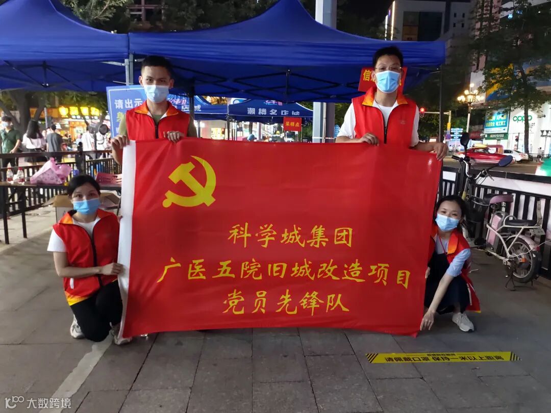 6月20日,广医五院旧改项目部多线驰援,派出两组党员服务队员,携带物资,分别支援黄埔街、大沙街开展第三轮全员核酸检测工作,共同构筑疫情防控坚固堡垒。他们穿着“红马甲”,顶烈日冒风雨,熟练地为市民提供指引,在飘扬的党旗下用实际行动诠释一名科学城城更人的责任和担当。