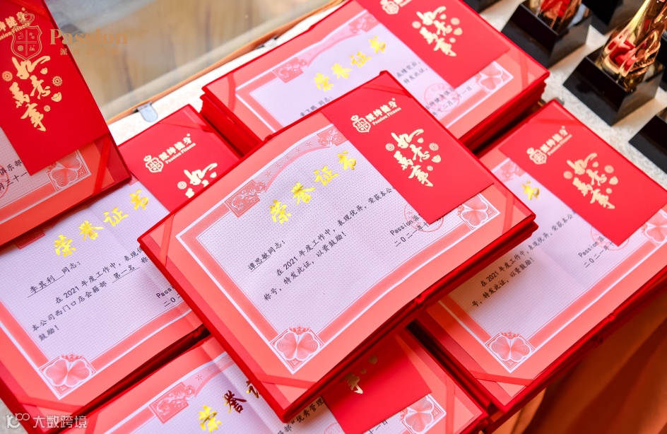 随后李柏等人为21年表现优异的员工颁发了荣誉奖杯和奖品以资鼓励: