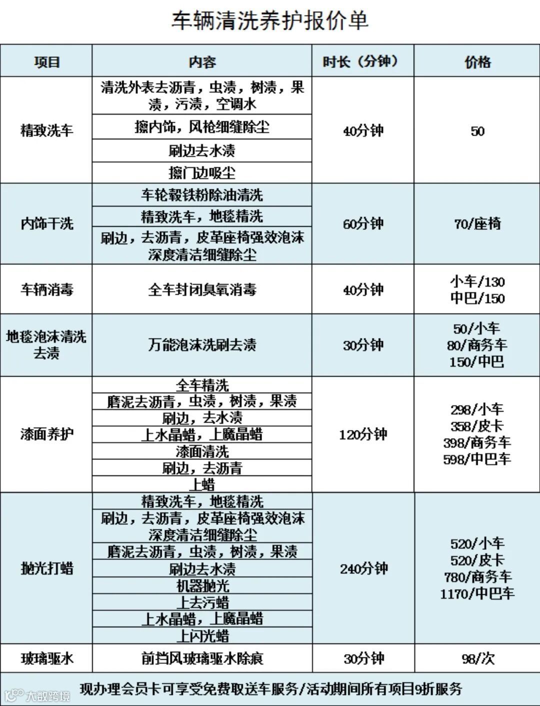 如果您的爱车需要清洗,可办理月卡30元/台次(原50元/台车),凭此月卡可享受图中汽车美容9折优惠和免费接送服务(新机场范围内)。