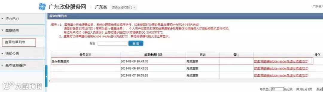 通过“广东政务服务网”打印