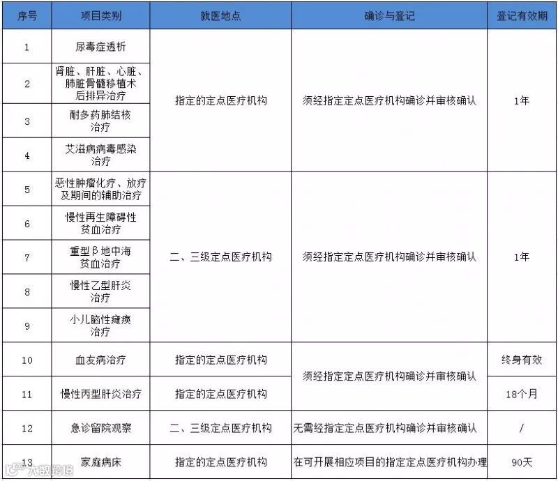 目前,广州市门特病种有以下13种(其中职工医保无“小儿脑性瘫痪治疗”门特项目)。除急诊留观外,其余项目都须经登记,一般情况下登记业务都在定点医疗机构完成。
